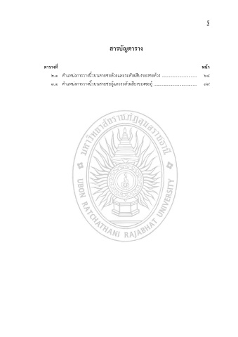 ฐ สารบัญตาราง ตารางที่ หน้า ๒.๑ ตำแหน่งการวางนิ้วบนสายซอด้วงและระดับเสียงของซอด้วง ……………………………. ๖๔ ู้ ๓.๑ ตำแหน่งการวางนิ้วบนสายซออู้และระดับเสียงของซออ …………………………………… ๘๙